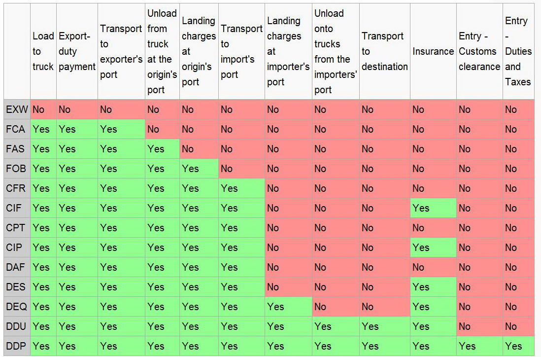 ინკოტერმს 2010 მიერ განსაზღვრული საზღვაო გადაზისვის ოთხი პირობა: