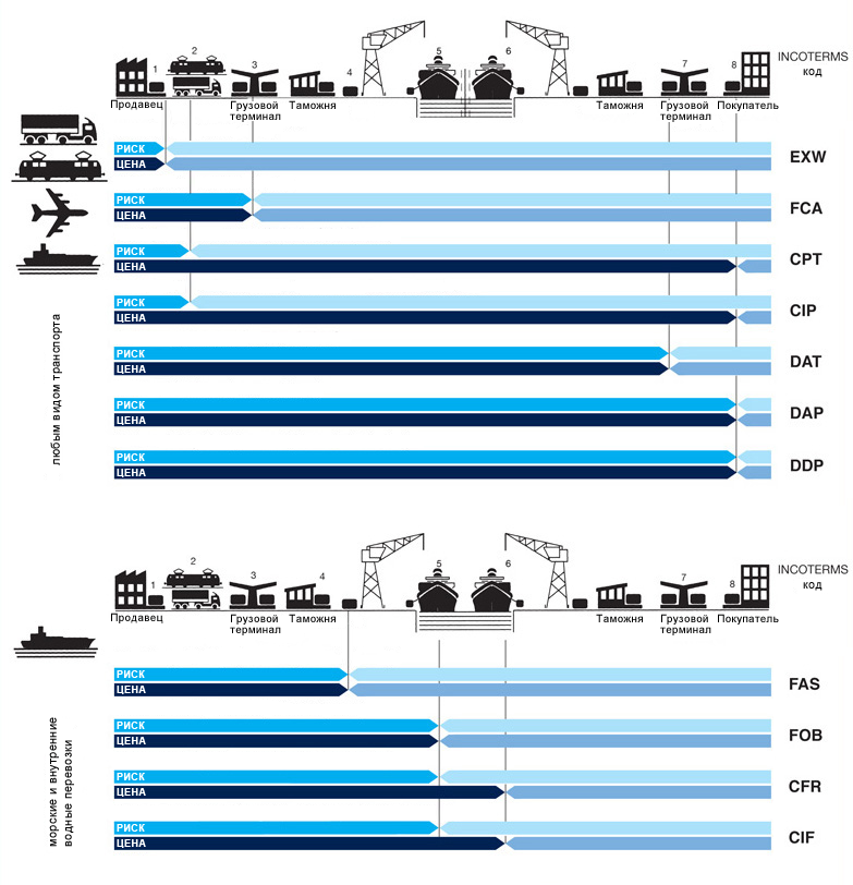 ინკოტერმს 2010 მიერ განსაზღვრული გადაზისვის 7 პირობა: